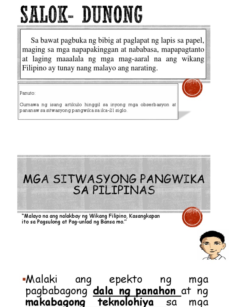 Flag for inappropriate content. Save Save Ang Sitwasyong Pangwika sa Pilipinas For Later. MGA SITWASYONG PANGWIKA SA PILIPINAS.