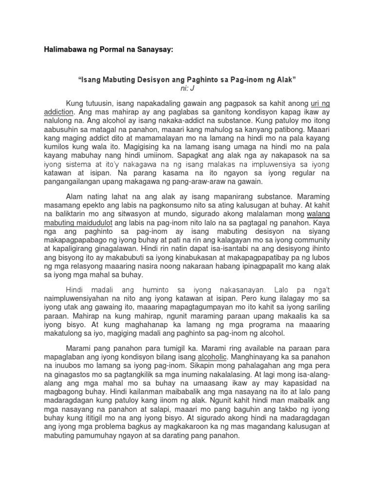 Halimbawa Ng Pormal Na Sanaysay Halimbawa Ng Pormal Na Sanaysay Tamang Course Hero