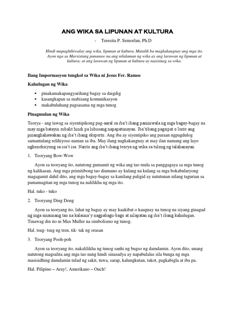 Sanaysay tungkol sa kultura at wika. Sa Pilipinas ang ginagamit na wika ay Filipino. SANAYSAY TUNGKOL SA WIKA Sa araling ito inyong matutunghayan ang ang mga kinalap at pinagsama-samang maikling sanaysay tungkol sa wika ng mga makatang Pilipino. Komunikasyon at pananaliksik sa wika at kulturang pilipino talaan ng mga gawain.